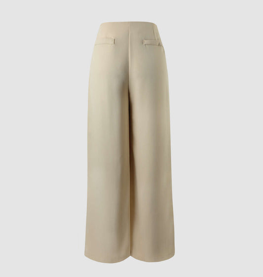 Beige multi pleated unisex trouser.