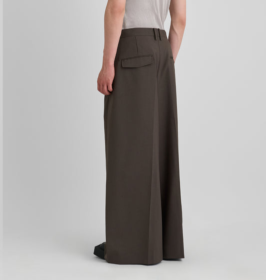 Bean Brown Oversized Pleated Trousers