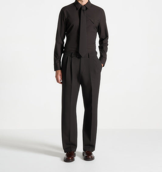 BLACK TAILORED SET (RELAXED SHIRT + PLEATED TROUSERS)